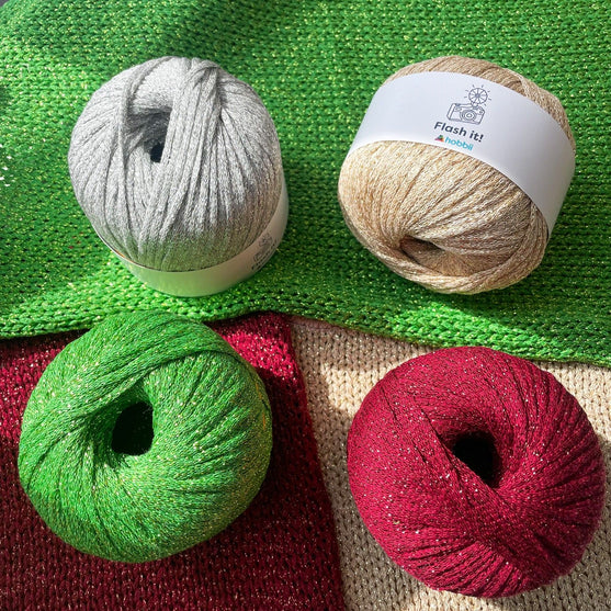 Trenger du inspirasjon? Flash it! vil passe fantastisk til klær som elegante topper, lette skjerf og sjal samt glitrende vesker og punger. Kom i feststemning og bruk dette garnet til dekorasjoner og interiør som serveringsunderlag og glassbrikker. Hvis du ikke vil gå all-in med glitteret kan du bruke Flash it! til å lage glitrende detaljer på prosjektene dine, som for eksempel striper, kanter eller mansjetter.