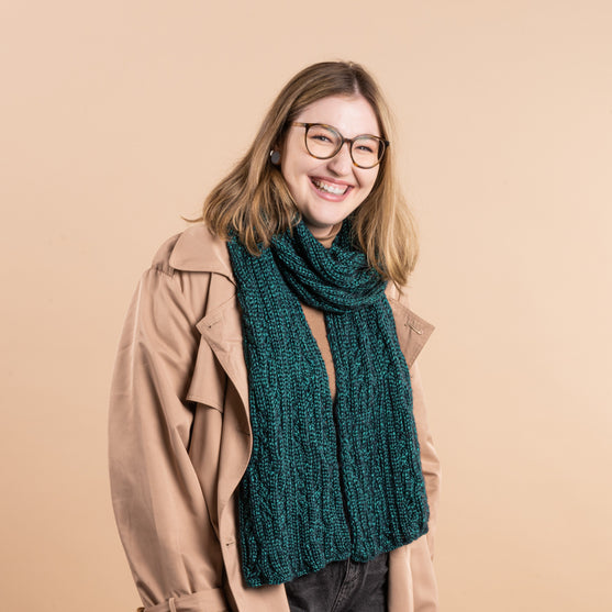 Lush Emerald har et flott mønster med fletninger. Mønsteret er både beskrevet i oppskriften og det kan strikkes etter diagram.