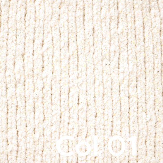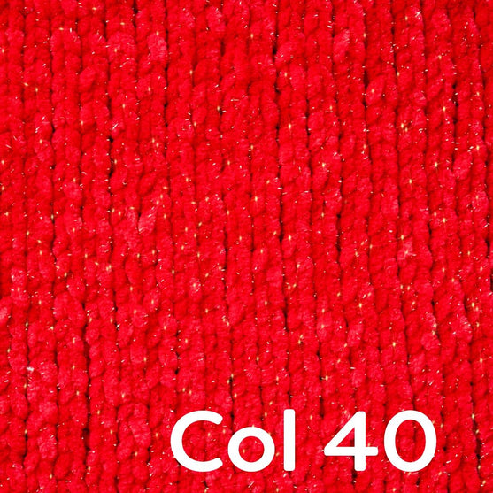 Honey Bunny Christmas Glitter er et super bulky velurgarn laget av 100% polyester. Teksturen er silkemyk og deilig å ta på og har en lett skinnende overflate.